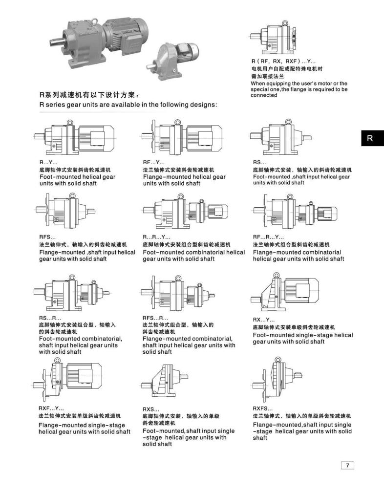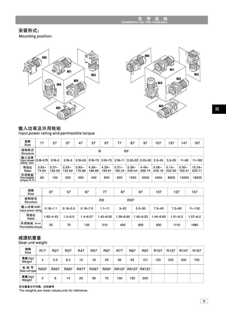 速比范围:R基本型3.33~289.74,RX型1.3~8.65,R/R组合型可达到27001